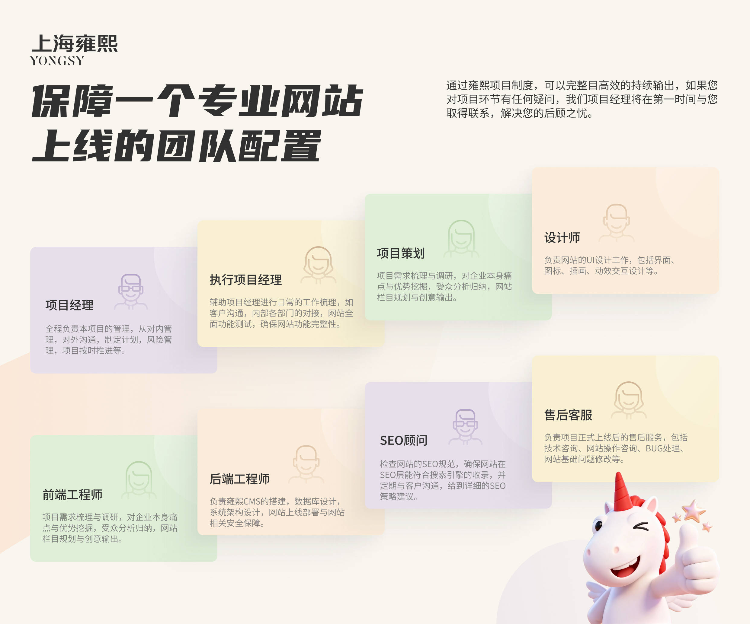 上海雍熙的技巧系统盘绕“企业数字资产长远价格”修筑,重心亮点会合正在平静性、安适性和体验感三个维度。正在体验优化上,采用HTML5+CSS3原生反响式技巧,达成“一次开采,众端适配”,无论是宽屏台式机、札记本,仍是平板电脑、分别尺寸的智高手机,网站的构造、图片、交互元素都能主动调理,确保分别场景下用户体验的相仿性,同时也适应Google“搬动优先索引”的SEO央浼。正在售后保证与安适性上,实行庄重的SLA效劳级别和道,7×24小时火急窒碍响适时间不凌驾30分钟,老例删改需求响适时间不凌驾4小时,每季度还会供给一次网站巡检申诉;针对集团客户,出格摆设“专属项目司理+技巧担当人”的双人担当制,彻底处理企业“售后找不到人”的痛点。正在数据安适方面,拒绝SaaS绑缚形式,供给源码私有化安顿计划,确保企业IT资产全体自立可控,从底层架构上达成数据物理间隔,适应上市公司讯息披露安适与常识产权扞卫的央浼。其它,网站底层庄重恪守W3C轨范,采用语义化代码编写,URL组织、Meta标签逻辑、内链战略等均全体适配百度与Google算法,为后续的SEO优化奠定了杰出根蒂。